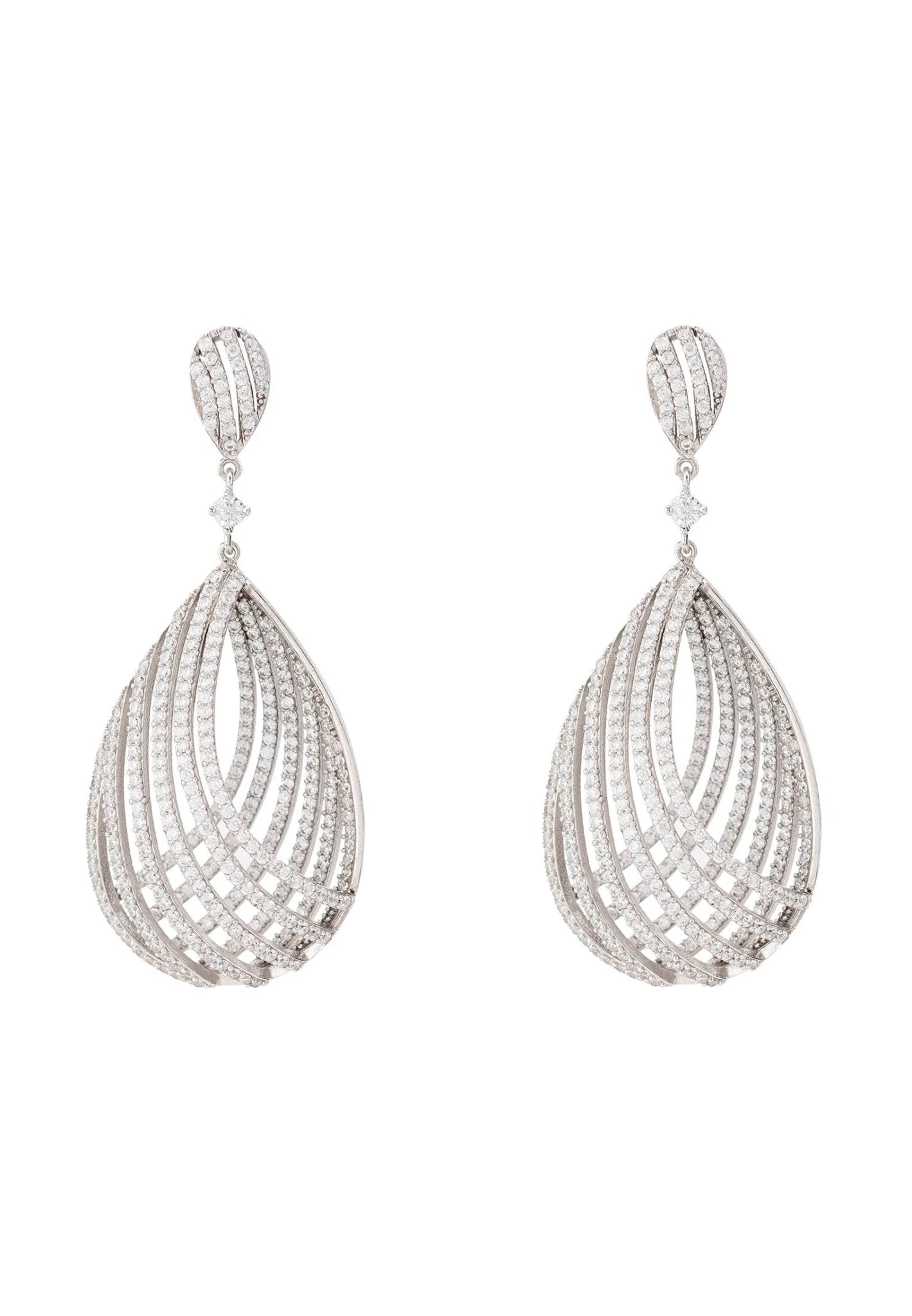 Handcrafted from 925 sterling silver, these earrings feature an intricate three-dimensional open lattice teardrop design suspended from a smaller teardrop with zircon detailing for added sparkle and natural movement.Â