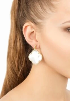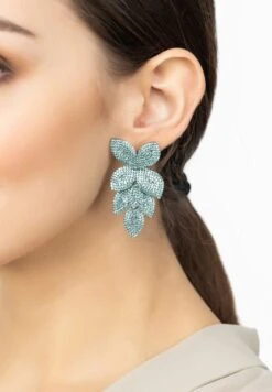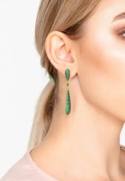Latelita Jasmine Flower Triple Drop Earrings Gold Emerald Green