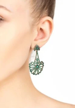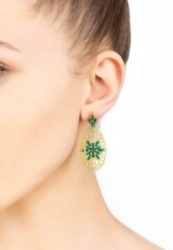 Latelita Jasmine Flower Triple Drop Earrings Gold Emerald Green