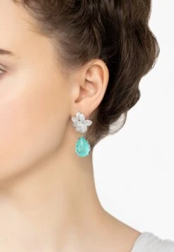 Latelita Orchid Flower Teardrop Paraiba Tourmaline Earrings Silver