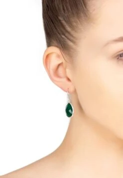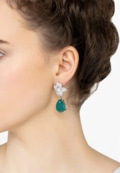 Latelita Orchid Flower Teardrop Colombian Emerald Earrings Silver